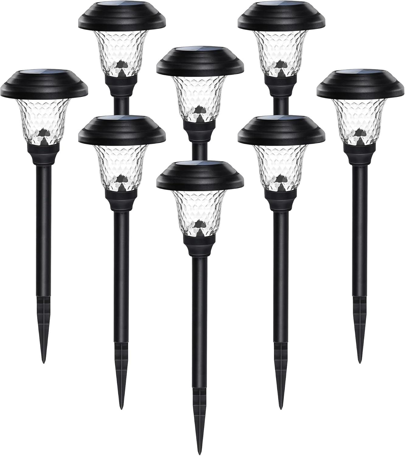 GIGALUMI 8 Pack Solar Pathway Lights, Solar Garden Lights Outdoor Warm White, Waterproof Led Path Lights for Yard, Patio, Landscape, Walkway (Black)